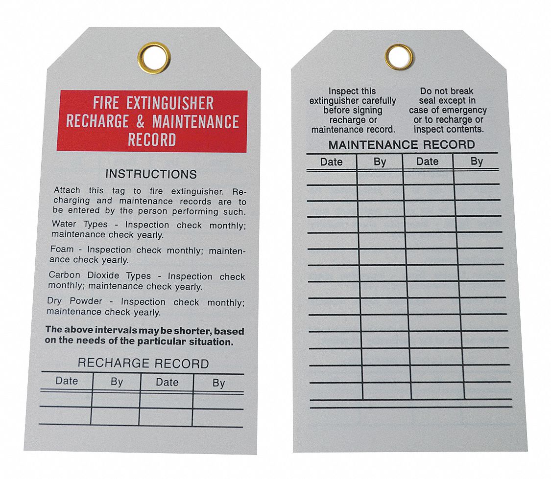 These Tags Provide Information About The Extinguisher's Maintenance And Inspection.